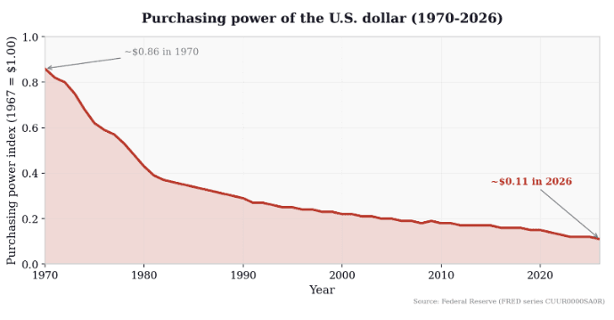 [2] Federal Reserve Bank of St. Louis (FRED), Purchasing Power of the Consumer Dollar (CUUR0000SA0R). https://fred.stlouisfed.org/series/CUUR0000SA0R